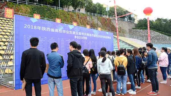 9月26日,由陕西省人才交流服务中心主办,我校与商洛市人才交流服务中心、西安大秦人力资源有限公司共同承办的2018年秋季综合类校园招聘会在我校顺利举办。校党委副书记彭虎军及陕西省人才交流服务中心、商洛市人力资源和社会保障局、商洛市人才交流服务中心相关负责人现场指导,各有关职能部门负责人、各二级学院党总支负责人、学工办主任及毕业生辅导员参加了招聘会并为毕业生提供就业指导服务。