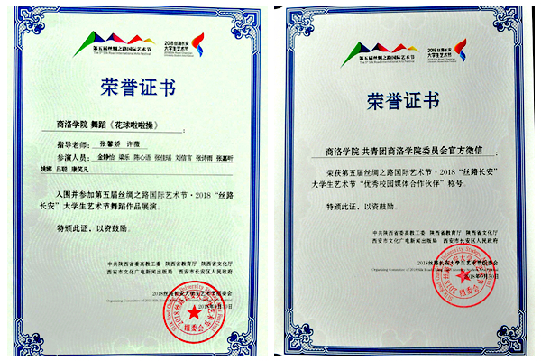 近日,第五届丝绸之路国际艺术节•2018“丝路长安”大学生艺术节落下帷幕,由我校选送的舞蹈作品《花球啦啦操》从230个作品中脱颖而出,入围舞蹈作品展演,成为全省同类院校中唯一入围艺术节并展演的舞蹈作品。我校团委官方微信被评为优秀校园媒体合作伙伴,是全省8家获此荣誉的校园媒体之一,系同类院校中唯一获此殊荣者。