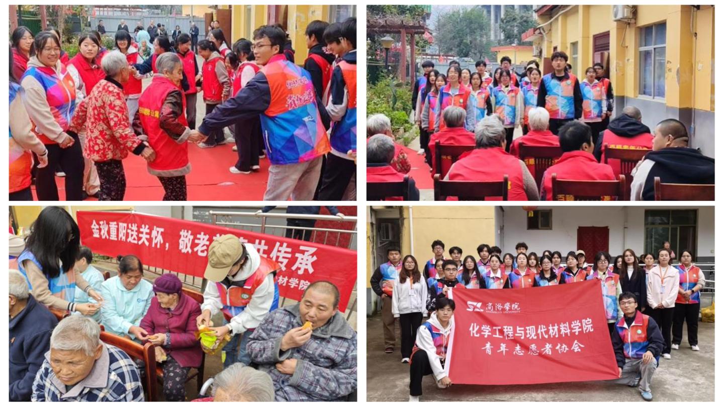 金秋重阳之际,为弘扬中华民族尊老敬老传统美德,10月29日,化学工程与现代材料学院团总支社会实践部赴商洛市百顺山庄老年公寓,开展“金秋重阳送关怀,敬老美德共传承”志愿服务活动。志愿者们为老人带来了舞蹈、朗诵、相声等精彩节目,活动中还分发了慰问品,并倾听老人故事,与老人们亲切交流,用青春活力传递温暖。
