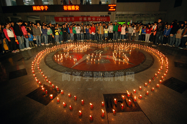 4月22日晚。我校学生自发组织祈福活动,为“4·20”雅安地震中遇难的同胞默哀,为灾区人民祈福