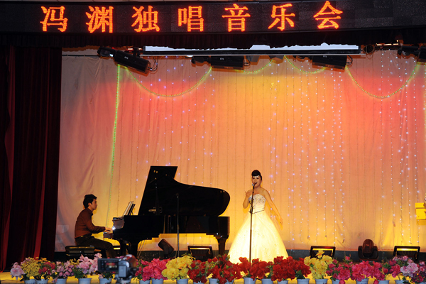 11月11日晚,由党委宣传部和艺术系联合举办的冯渊独唱音乐会在学校大学生活动中心隆重举办。艺术系青年教师冯渊为观众们激情演唱了《虞美人》《枉凝眉》《秦岭里最美的地方是商洛》等16首经典名曲。校党委书记张景书、纪委书记王思怀、副院长魏书堂,商洛市委组织部副部长叶朝阳,市文联党组书记王良,市广电局副局长、商洛电视台台长巩文超,市音乐家协会主席林宏彦,市剧团团长李小彬等商洛文化艺术界人士、音乐爱好者,我校艺术系师生、“国培”学员代表共400余人共同聆听了这场音乐盛宴