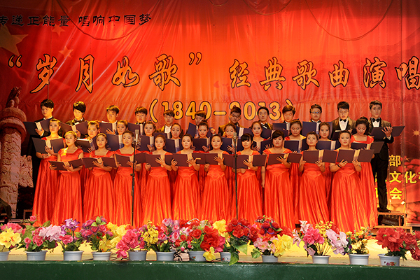 为了提高思想政治理论课的教学效果,使思想政治理论课成为大学生真心喜爱、终生受益的课程,11月26日,我校思想政治理论课教学研究部、思想文化研究所、思想政治研究会联合举办了“岁月如歌”经典歌曲演唱会,我校学生登台演唱了脍炙人口、具有时代特色的 30多首经典歌曲。校领导刘建林、左晓民、王思怀、陈永庄、魏书堂和师生们一同观看了演出