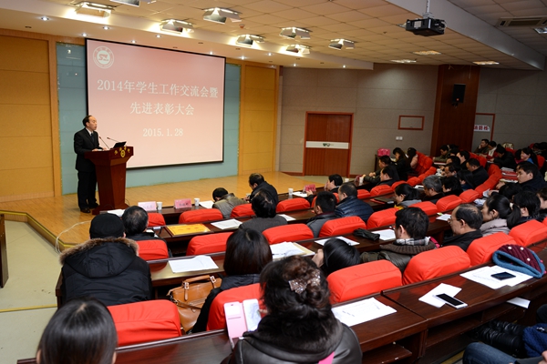 1月28日,我校召开2014年学生工作交流暨先进表彰大会,对2014年度学生工作中涌现出的先进集体和个人进行表彰,交流学生工作研究成果和先进经验。校党委书记张景书出席大会并讲话。党委副书记彭虎军主持大会。教务处、后勤保障处、招生就业处、保卫处、团委主要负责人,各二级学院党总支书记,全体辅导员、班主任及受表彰的学生管理先进个人参加了大会